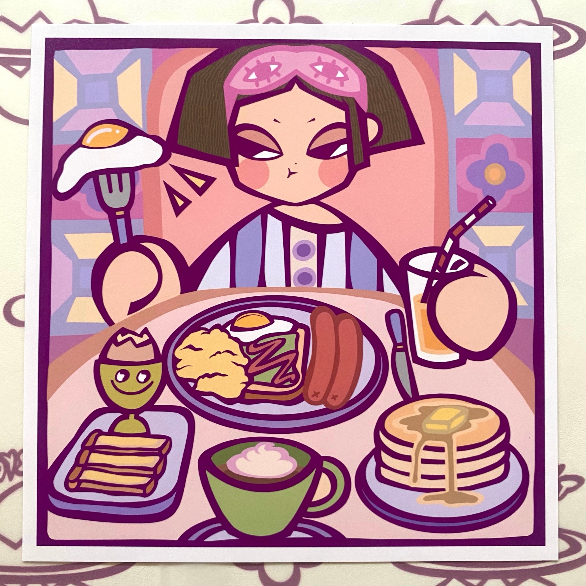 'Early Morning' (Panel 3) Art Print by Eggys Planet. Approximately 5 x 5 inches printed on 250gsm bordered satin paper. Colours on screen may vary.